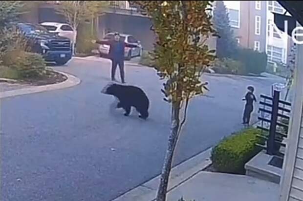 В соцсетях набрало популярность захватывающее видео, на котором черный медведь преследует ребенка на улице. Мальчика спас мужчина, который прогнал медведя, раскинув руки.
