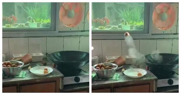 Согласно информации в сети, авторы видео пытались пожарить картошку целиком. Сперва всё шло нормально, но в какой-то момент картофелины начали взрываться.