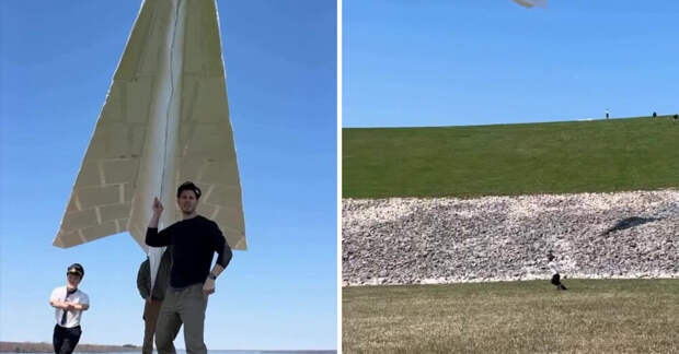 Команда собрала гигантский бумажный самолёт и успешно запустила его в воздух. Полёт длился менее минуты, но вызвал настоящий восторг у участников и зрителей. Проект быстро стал популярным в сети и вдохновил других попробовать что-то необычное.