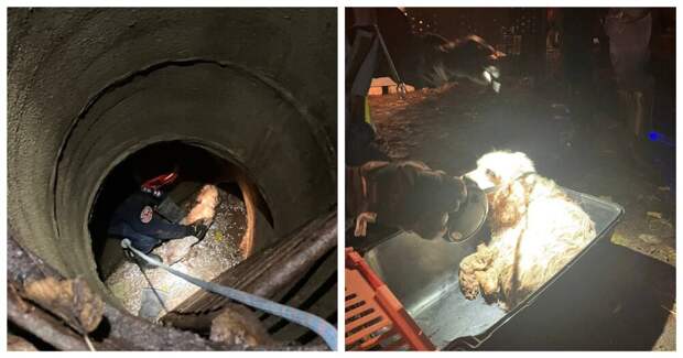 Сотрудники поисково-спасательного отряда «СпасРезерв» пришли на помощь собаке, провалившейся во время прогулки в открытый люк.