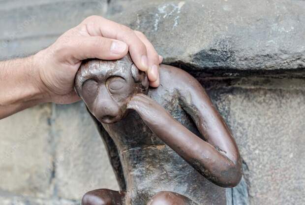 Поглаживание этой загадочной обезьяны якобы приносит удачу.