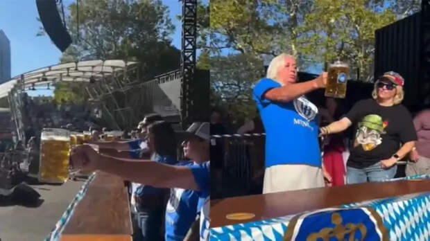 Участники турнира соревновались, кто дольше простоит с 5-литровой кружкой пива на вытянутой руке.