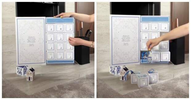 В сети показали необычный новогодний адвент-календарь, выпушенный российским фарфоровым заводом. Ценителей фарфоровых изделий ручной работы будут ждать 12 ячеек с ёлочными игрушками и шкатулками.