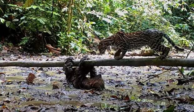 Скрытые камеры в природном заповеднике Ясуни на востоке Эквадора засняли попытки хищника-оцелота напасть на ленивца. Казалось бы, у медленного ленивца нет шансов перед дикой кошкой. Но не тут-то было.