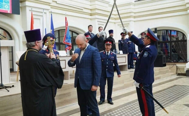 Глава региона принёс присягу, в которой пообещал «служить Отечеству, казачеству и вере православной», не щадя живота своего.