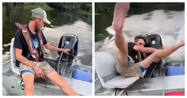 Герой видео катался с женщиной на лодке. В какой-то момент мужчина задумался и поймал "леща".