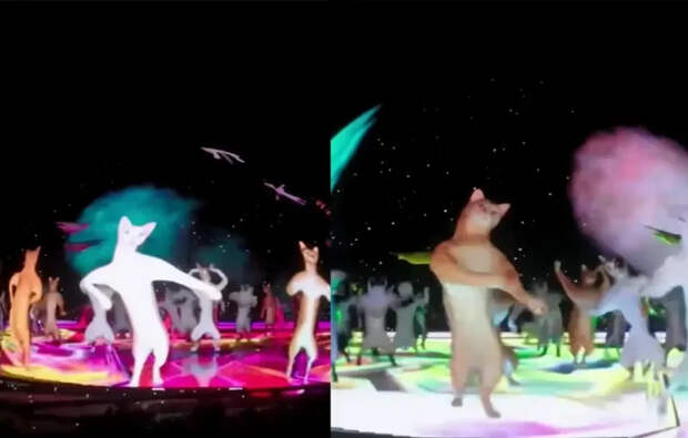 На куполе сферы в Лас-Вегасе в вечерне время запустили психоделического шоу с мемными котами.