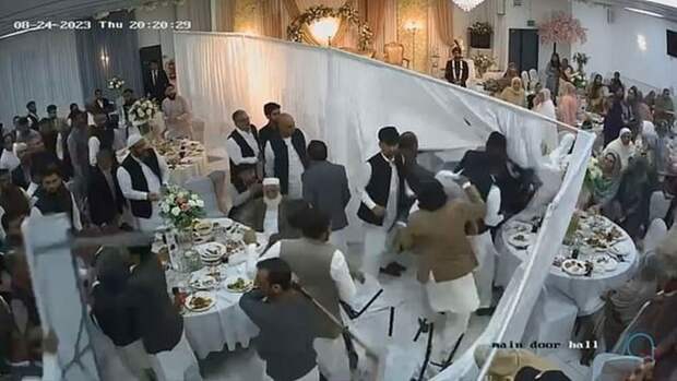 Какая свадьба без драки? В Великобритании традиционная пакистанская свадьба закончилась массовой дракой. Конфликт запечатлела камера наблюдения.