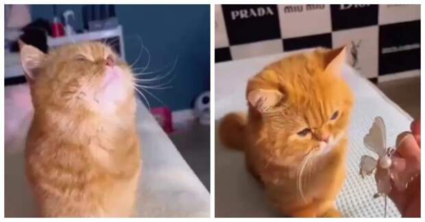 У этой кошки уникальная работа. Она выступает в качестве модели для ожерелий, и ее гордая демонстрация каждого украшения завоевала сердца многих поклонников.