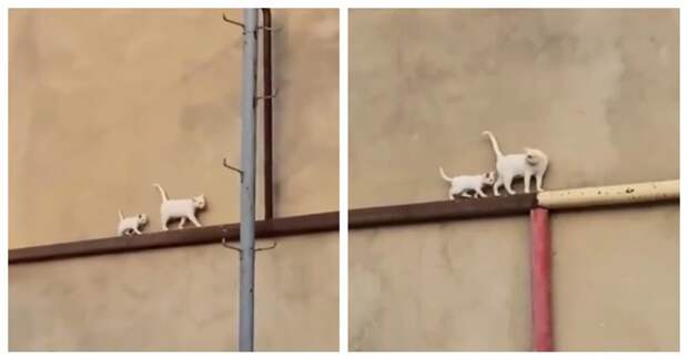На видео попал милый момент из жизни кошачьего семейства. Пушистая мама каждые несколько секунд оглядывалась на котёнка, чтобы убедиться, что с ним всё в порядке.