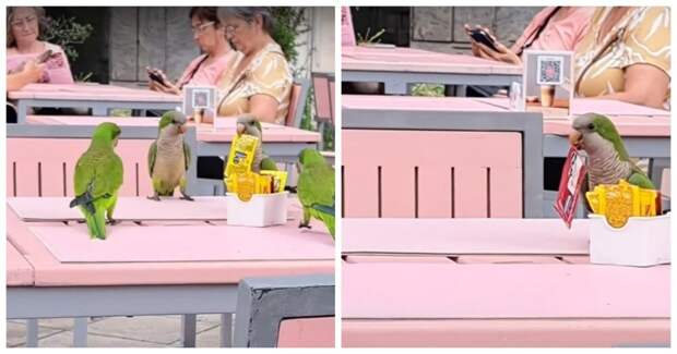 В Аргентине попугаи наворовали пакетиков со специями из ресторана и остались довольны собой.