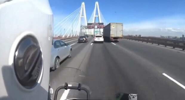 В Санкт-Петербурге мотоциклист догнал попутный автомобиль и неудачно приземлился, что привело к перелому ноги.