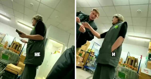 Женщина, работающая на кассе, отказалась брать оплату у молодого человека, так как отсутствовал необходимый серийный номер.