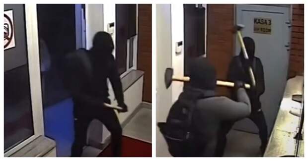 Двое мужчин забежали в пункт обмена валют в Польше. Злоумышленники попытались разбить ударопрочное стекло, однако их ждало разочарование.