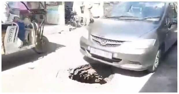 Житель Индии запечатлел инцидент на одной из дорог. Скутерист наткнулся на неприятный сюрприз, когда ехал по своим делам.