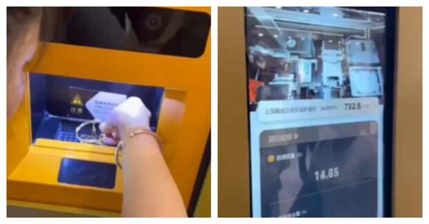 В Китае можно найти золотые банкоматы. Они принимают золотые изделия и переводят сумму, которая соответствует их весу и рыночной стоимости на банковский счет пользователя.