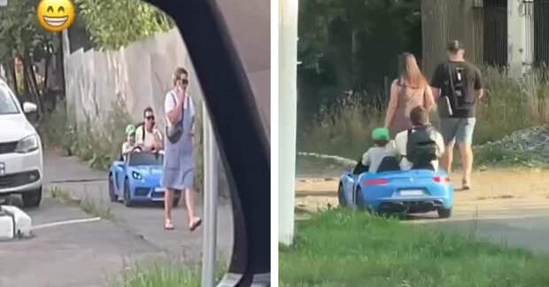 Очевидец снял, как синий Porsche мчался по тротуару со скоростью около 20 км/ч. За рулём был юный гонщик, а на пассажирском месте — его довольный отец. Прохожие ещё долго оглядывались, пытаясь понять, что это за новая служба такси.