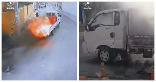 Он прибыл на горящей машине к зданию пожарной станции с просьбой о немедленном тушении возгорания.