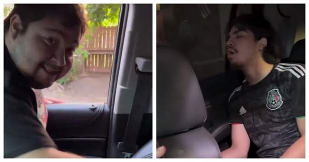 Мужчины подшутили над своим другом, спящим в машине. Авторы видео устроили жертве незабываемое пробуждение.