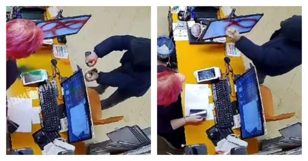 В офис вошёл мужчина и начал расписывать аэрозольной краской компьютеры, столы и принтеры.