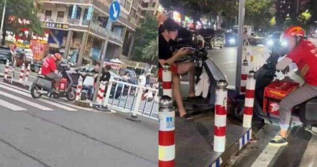 Двое мужчин на электровелосипедах столкнулись на пешеходном переходе в Хуэйчжоу.