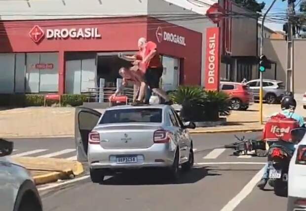 В отчёте полиции сказано, что драка началась после того, как мотоциклист пнул ногой зеркало автомобиля "Рено" и начал кричать. 59-летний водитель автомобиля вышел, чтобы уладить конфликт, но завязалась драка. Мотоциклист скрылся.