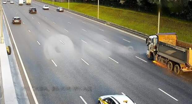 На 36 километре МКАДа у грузовика на ходу отвалилось колесо. Удивительно, но под раздачу попал всего 1 автомобиль. Проскакав весь МКАД колесо вылетело на встречную обочину, где в это время находился человек. Что он там делал и что с ним случилось информации нет.