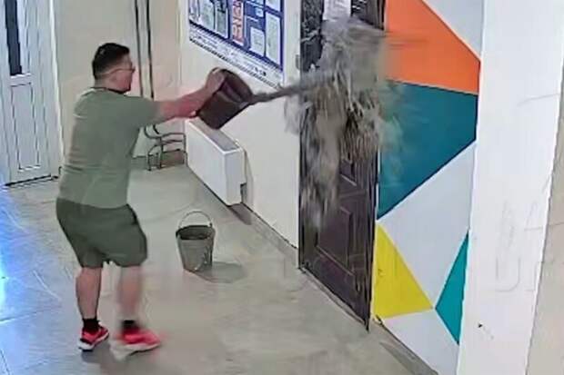 На Урале автолюбитель облил дверь офиса управляющей компании грязной водой. Причиной такого поступка стало длительное затопление подземного паркинга в доме.