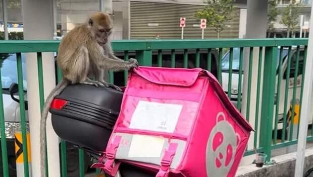 Обезьяна попыталась украсть еду у мужчин на стоянке скутеров и мотоциклов. Когда автор видео попытался приблизиться к воровке, она психанула и сбросила на землю защитный шлем.
