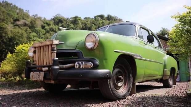 В основе винтажный Chevrolet Styleline, к багажнику которого он ещё в конце 70-х прикрутил газогенераторную печь: чтобы завести мотор, нужно её растопить, а потом периодически подбрасывать щепки — как на советских грузовиках 1930-х.