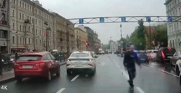 Видео из Снакт-Петербурга. Таксист при перестроении зацепил автомобиль с видеорегистратором, а после обвинил другого водителя в ДТП. Смотреть со звуком.