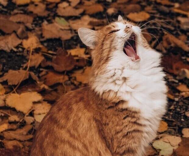 Красоту ярких осенних красок ценят не только люди, но и котики. Убранство деревьев можно понюхать, лизнуть, даже пожевать. А ещё побегать по бягряно-золотому ковру, поваляться и даже зарыться в него.