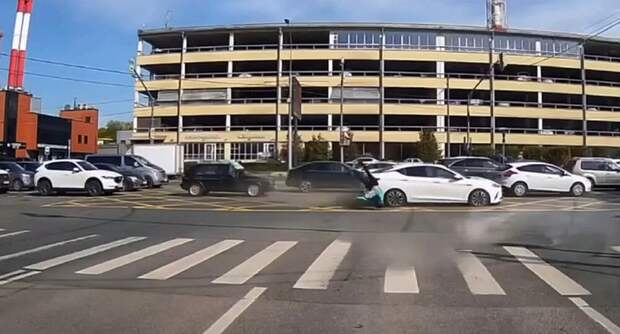 На Боровском шоссе в Москве легковой автомобиль сбил курьера на электровелосипеде, который пытался повернуть налево. О состоянии пострадавшего информации нет.