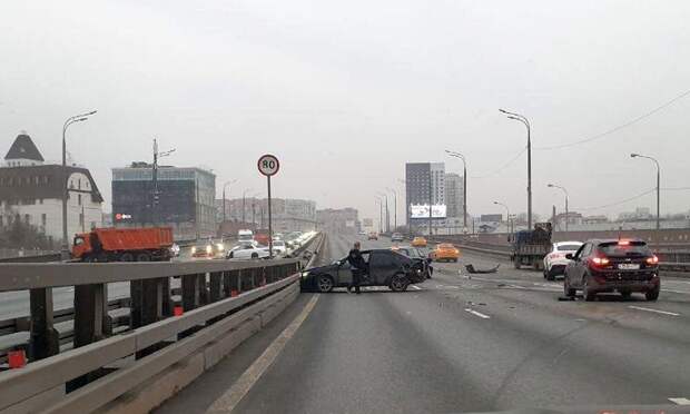 На Русаковской эстакаде в Москве от столкновения с несколькими автомобилями самосвал пробил ограждение, выехал на встречную полосу и смял ещё несколько автомобилей. Сообщается, что пострадали три человека. Всего разбито 8 машин.
