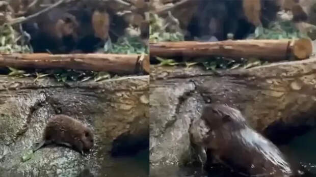 Бобриха хотела отправить детёныша спать, но у него были другие планы. Матери пришлось возвращать беглеца.