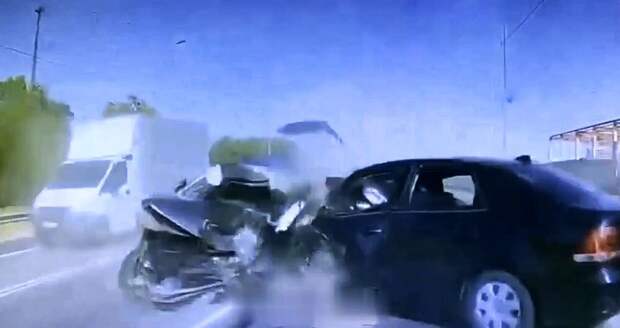 Съемка велась из автомобиля ВАЗ-2107. Массовую аварию организовала вылетевшая на встречку машина ВАЗ-2110. Сообщается, что 25-летний водитель "десятки" не был пристёгнут и погиб. На нём числится 38 нарушений ПДД. В аварии также поучаствовали "Шевроле" и "Газель. Госпитализированы водитель и пассажир "Фольксвагена".