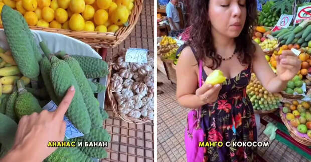 Туристка устроила себе настоящий вкусовой квест на рынке скрещённых фруктов: ананас с бананом, маракуя с персиком, манго с кокосом, груша с дыней и даже банан с яблоком. В итоге она купила небольшой пакет этих экзотических гибридов за 73 евро (₽7 тыс) и осталась в восторге от новых вкусов.
