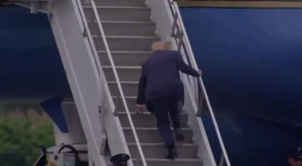 Президент США Дональд Трамп чуть не упал, поднимаясь по трапу самолета. Ранее он смеялся, когда так же споткнулся его предшественник Джо Байден.