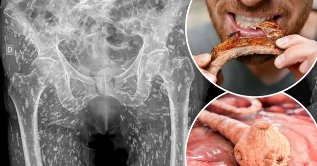 Рентген показал, что мужчина заражён сотнями яиц свиного цепня. И всему виной банальная ошибка при приготовлении пищи. Пациент обратился к врачу, когда упал и почувствовал боль в бедре.