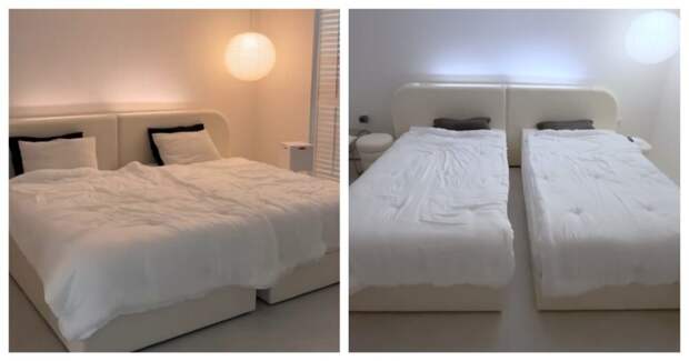 В сети набирает популярность необычная кровать. Модель оснащена подвижным механизмом, позволяющим за секунды превратить двуспальную кровать в две односпальных. Расстояние между половинками регулируется пультом.