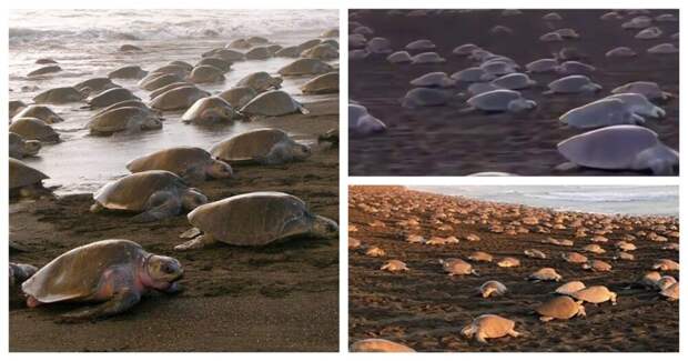 Каждый год на пляжах Коста-Рики собирается крупнейшее на Земле скопление морских черепах. Тысячи, а иногда и сотни тысяч, морских черепах выходят на берег для откладывания яиц. После этого они уходят в океан, не заботясь судьбой потомства.