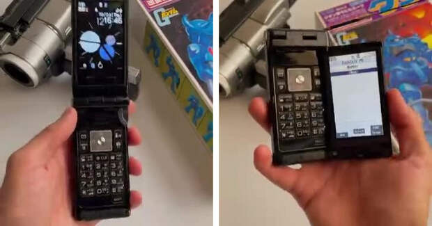 Японцы выпустили в 2008 году для внутреннего рынка любопытную двойную раскладушку. Главной особенностью телефона Panasonic P905i была возможность просмотра ТВ, для чего производитель сделал необычный шарнир, позволяющий поставить дисплей боком как мини-телевизор.