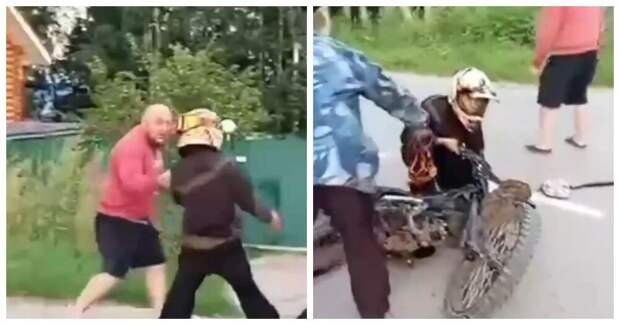 Компания подростков решила покататься на питбайках прямо у частного дома. Шум моторов раздавался под окнами, чем вывел из себя хозяина жилья. Мужчина не выдержал и вышел разбираться.