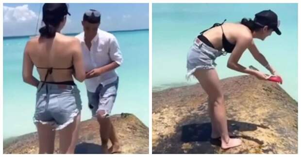Плоский и мокрый камень не дал жениху встать на одно колено.