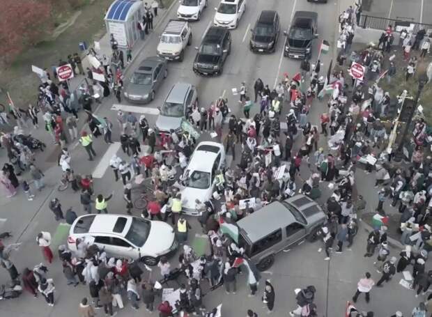 Небольшой экшен случился в США на пропалестинском митинге. Митингующие легли на дорогу, изображая мертвых, в память о погибших мирных палестинцах. Как вдруг пожилой американец наехал на них, вышел из машины и начал угрожать ножом, а затем сел обратно. Протестующие пытались вытащить мужчину из машины, но ему все-таки удалось скрыться.