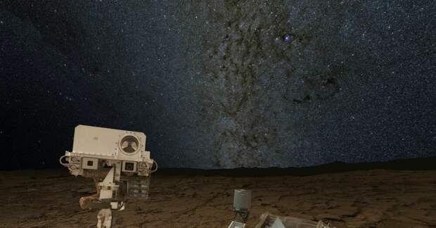 Первый снимок — селфи аппарата Curiosity, а второй — небо, запечатленное земной обсерваторией.