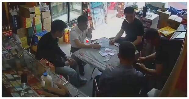 Несколько любителей карточных игр собрались в небольшом табачном магазинчике. Однако их досуг был прерван автомобилем, который внезапно протаранил стеклянные двери торгового заведения.