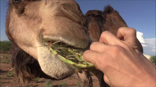 Простая закономерность эволюции: чем суровее условия, тем суровее растения. А в пустыне условия просто жесть, поэтому они заковали себя в толстую кожистую оболочку и обросли колючками по самые цветы. Верблюдам, однако, плевать на все эти ухищрения с высоты своего роста. Только вот не совсем понятно: как именно они приспособились к поеданию кактусов?
