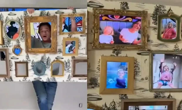 Мужчина превратил свой телевизор в стену с портретами из Хогвартса. Он сделал специальный каркас для телевизора с рамками, а затем подогнал под размер окошек видеоролик.