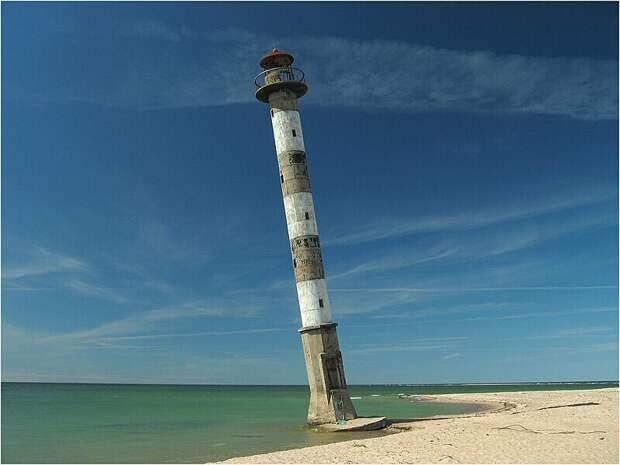 В море, у побережья острова Сааремаа в Эстонии стоит колоритный маяк, сильно наклонившийся к воде. Когда его построили в 1933 году из железобетона, он стоял на земле и располагался более чем в 150 метрах от берега.